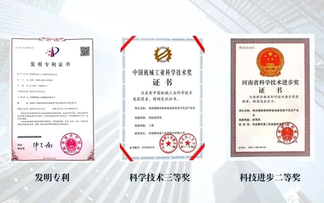 黎明重工始终坚持高质量发展,不断创新,在管理、科研、技术等方面争创佳绩,其在清洁煤粉高效制备成套设备开发及产业化荣获中国机械工业科学技术三等奖、河南省科学技术进步二等奖、固体燃料加工安全保护系统及方法荣获国家级发明专利证书。
